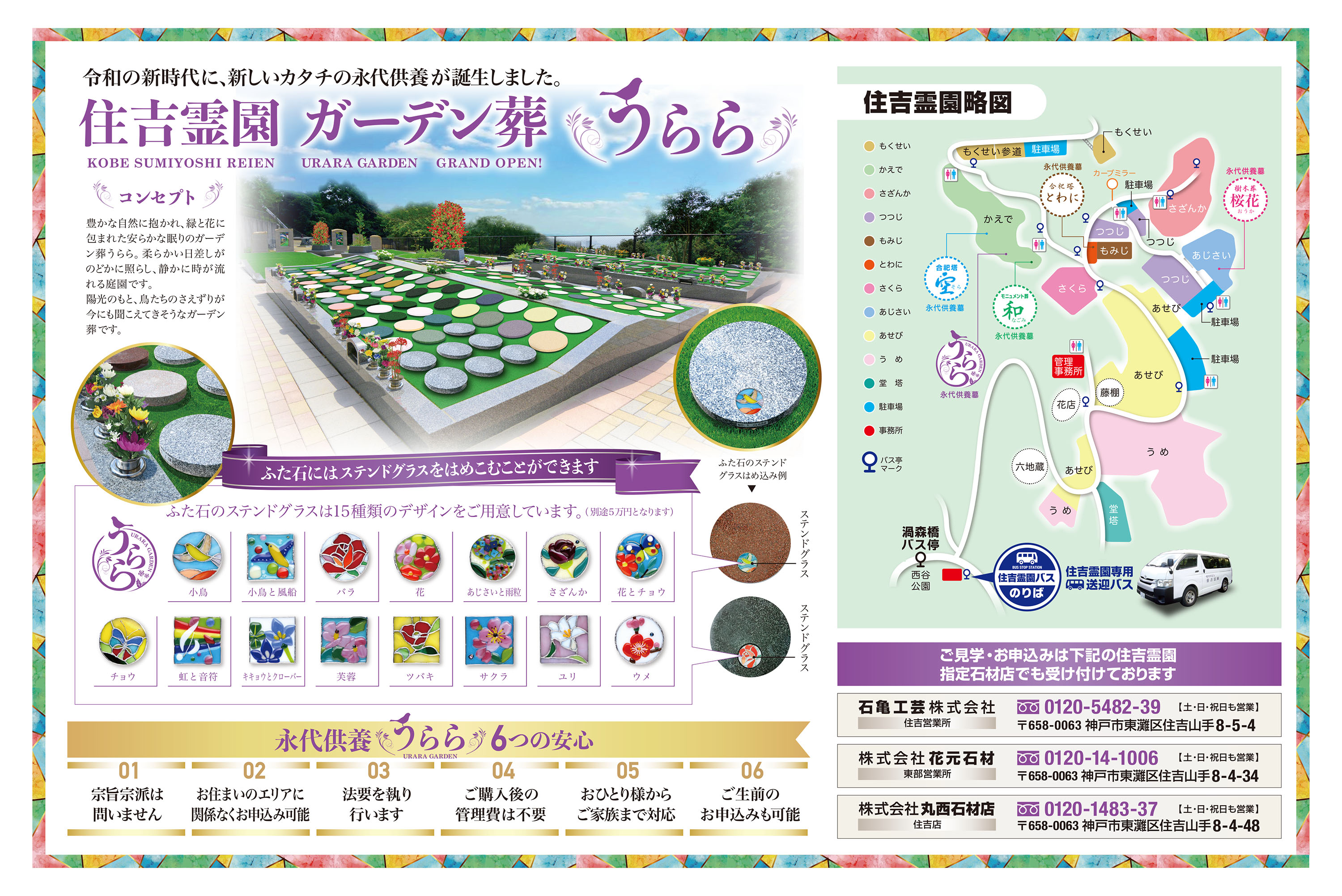 2019年度秋 住吉霊園チラシ 2023 9/15 お知らせブログ 2019.10.14 2023.09.15 お知らせブログ 水子供養祭延期のお知らせ 神戸市バス 後面ステッカー 関連記事 年末年始のお知らせ 2022.12.03 住吉霊園 一般墓所 2023.10.27 永代供養墓 うらら ステンドグラス 追加デザイン 2023.07.08 2019年度春 住吉霊園チラシ 2019.03.18 住吉霊園内 お花屋さん 年末年始営業時間 2024.12.22 8月15日 台風7号による臨時休業のお知らせ 2023.08.14 春のお彼岸のお参りについて 2020.03.16 【降雪】園内巡回バス運行状況 2023.01.27