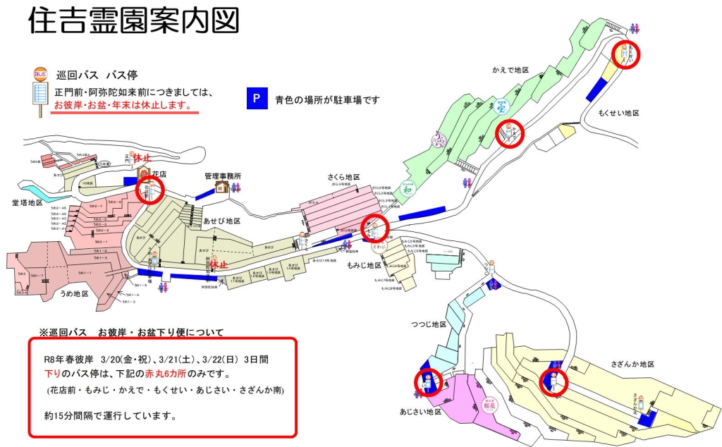 ●樹木葬「桜花」にお参りのお客様へ……最寄りの巡回バス バス停は「あじさい」です。